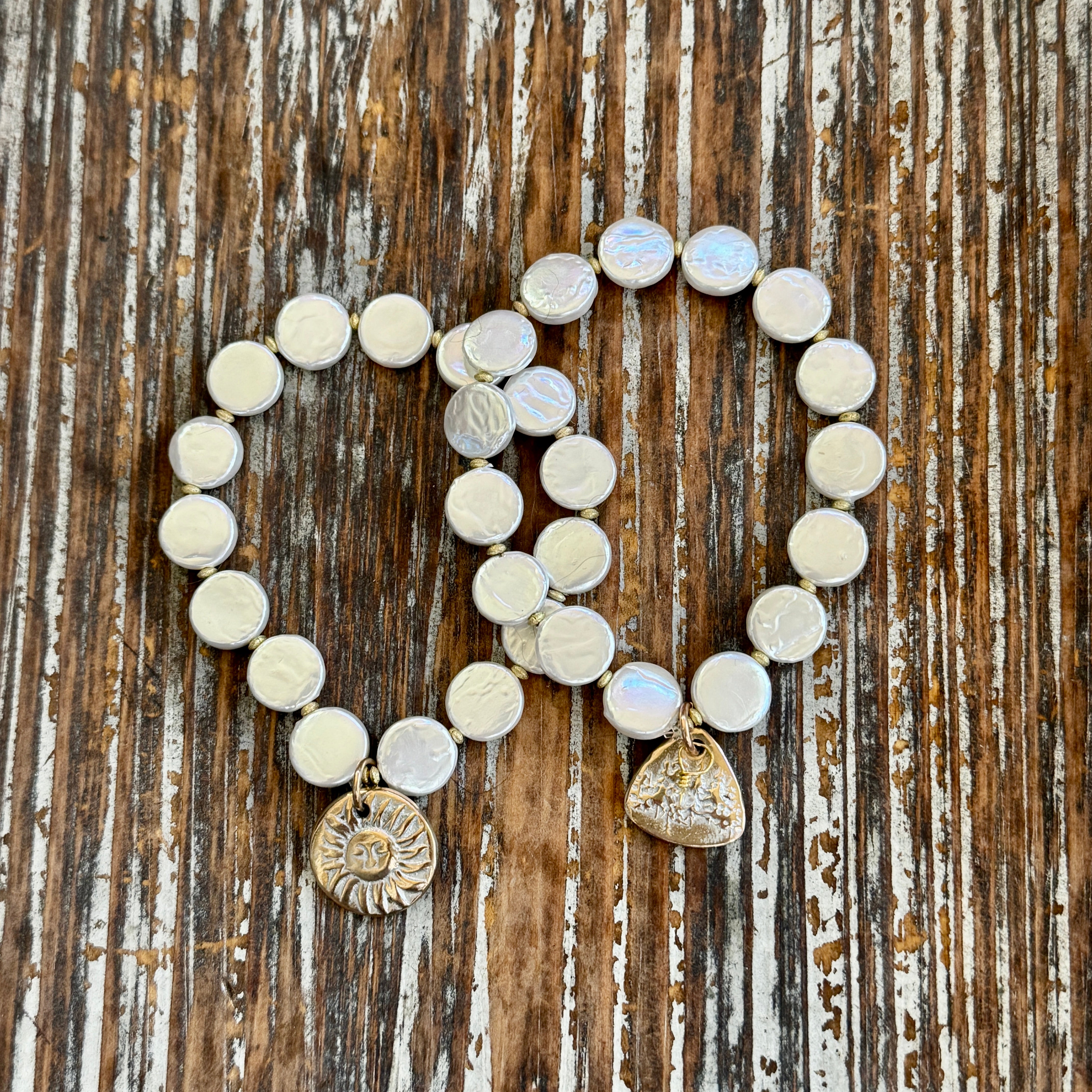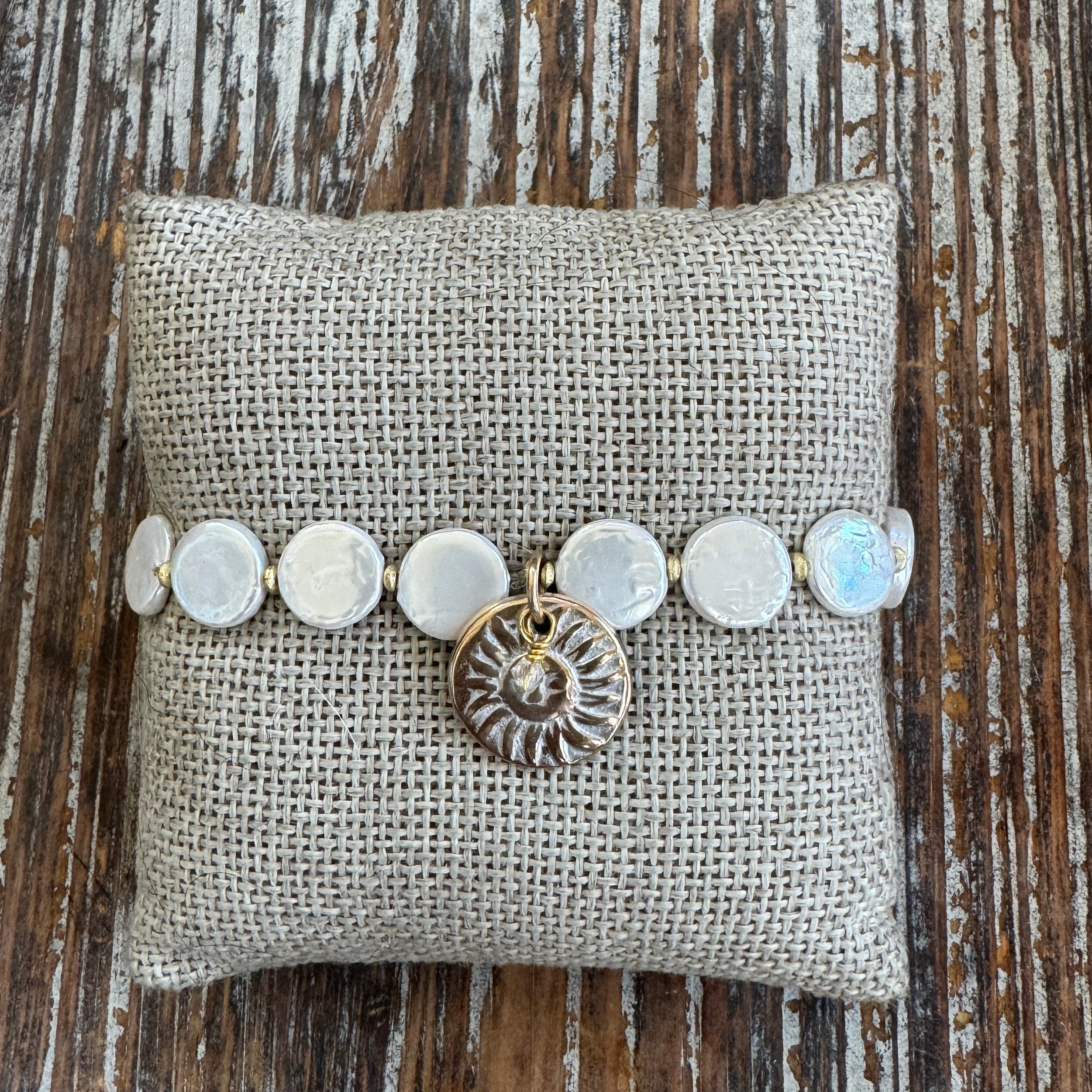 Coin Pearl Stretch Charm Bracelet